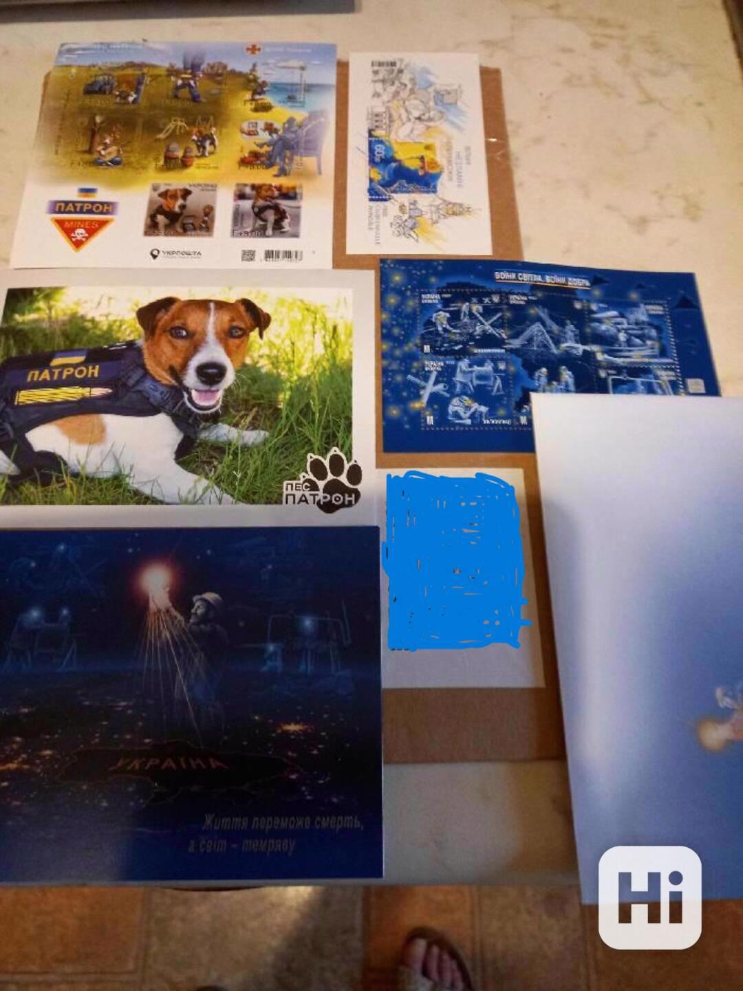 Prodám aršík samolepících známek Ukrajinské pošty pes Patron. Patron je pes, který hledá miny. Je to první charitativní válečná známka. Známek je v aršíku celkem 8 viz fotografie v příloze. Cena je včetně poštovného. Cena stále stoupá. Já nezdražuji.