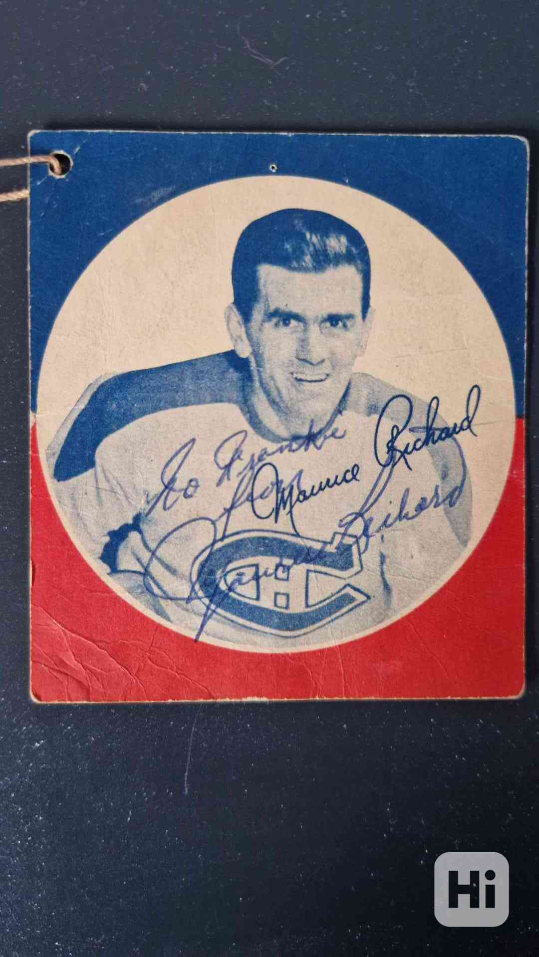 Kartička hokejisty M. Richarda s podpisem