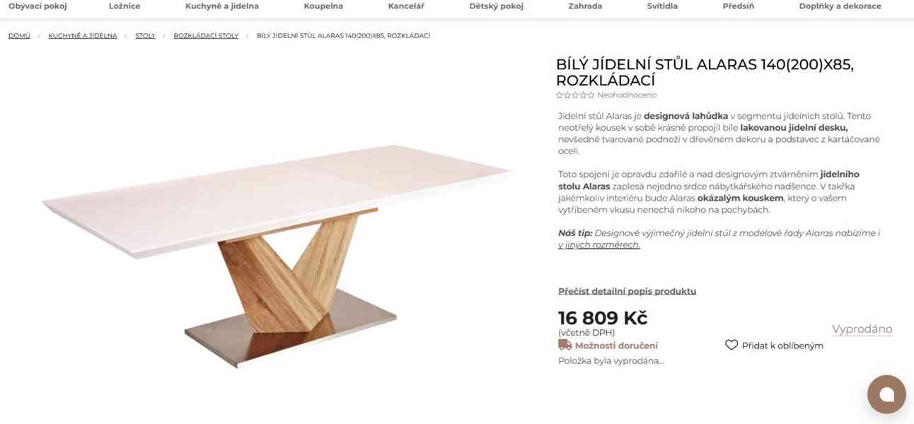 Prodám jídelní stůl Scandishop Alaras 140, v perfektním stavu (žádné škrábance ani jiné kazy), který jsem měla v obývacím pokoji 3 roky, ale nevyužívala jsem jej a nakonec zakoupila stůl jen pro dvě osoby.