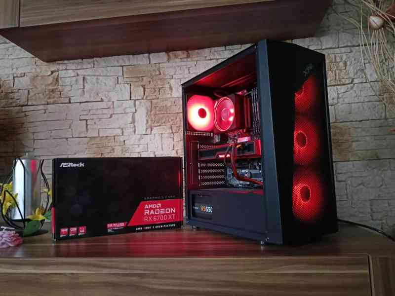 ✅ VGA: ASROCK RX 6700XT - 12 GB GDDR6, pěkná referenční edice, červeně podsvícené logo RADEON, fan/stop, tichá