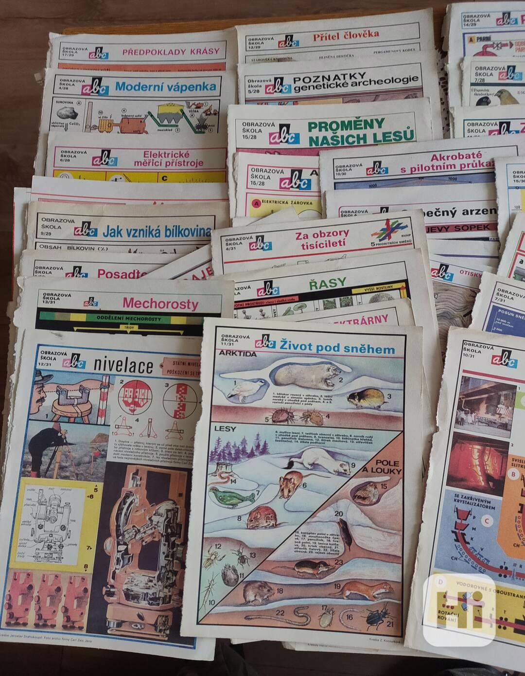 Nabízím raritní stránky z časopisů ABC, 80 léta, celkem 5 ročníků. Jedná se o stránky Obrazová škola, čísla 1-24/26-1/32. Z druhé strany je vždy povídání ke kreslenému tématu vpředu. Celkem 117 stránek, tedy ze 117 časopisů ABC. Mohu zaslat i poštou, stav viz foto.