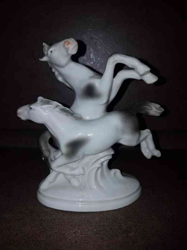 Prodám starožitnou porcelánovou plastiku dvou vzpínajících se koní, grošáků. Vespod značeno zeleným signem, Porcelánka Wallensdorf FASOLD and STAUCH, po roce 1903. V-14 cm, š-14 cm, hl.-6 cm. Tato porcelánka sídlila v Blocku do r. 1972. Perfektní stav, nepoškozená. Osobní předání na Praze 3, nebo zaslání přes Zásilkovnu. Volejte 770 630 523, nebo pište na morgiana007@gmail.com