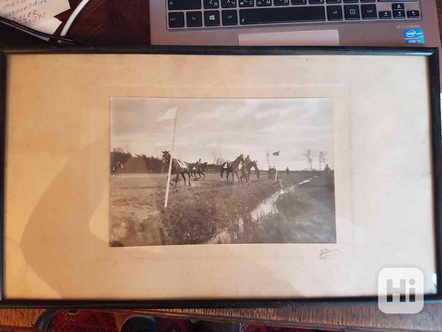 Prodám starou originální černobílou fotografii koňů s jezdci - vítězů Pardubické Steeple Chase z roku 1929, zarámovaná a zasklená, perfektní stav. Na paspartě vpravo dole je vtlačený podpis fotografa: Jos. Pirkurt, Pardubice. Na zadní straně je v ornamentu papíru špatně čitelný záznam o vítězích dostihů na 1. - 3. místě + další poznámky. RARITA! Osobní předání na Praze 3, nebo zaslání přes Zásilkovnu. Volejte na 770 630 523, nebo pište na morgiana007@gmail.com