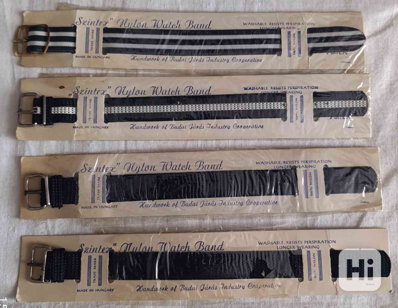 Prodám 4 kusy absolutně nových, nerozbalených retro nylonových pásků na náramkové hodinky, vyrobeno v Maďarsku, průmyslové družstvo Budai Jarase, ruční výroba v šedesátých letech. Cena za kus 90,- Kč, možno i jednotlivě. Osobní předání na Praze 3, nebo odeslání přes Zásilkovnu či Balíkovnu. Volejte 770 630 523, nebo pište na morgiana007@gmail.com