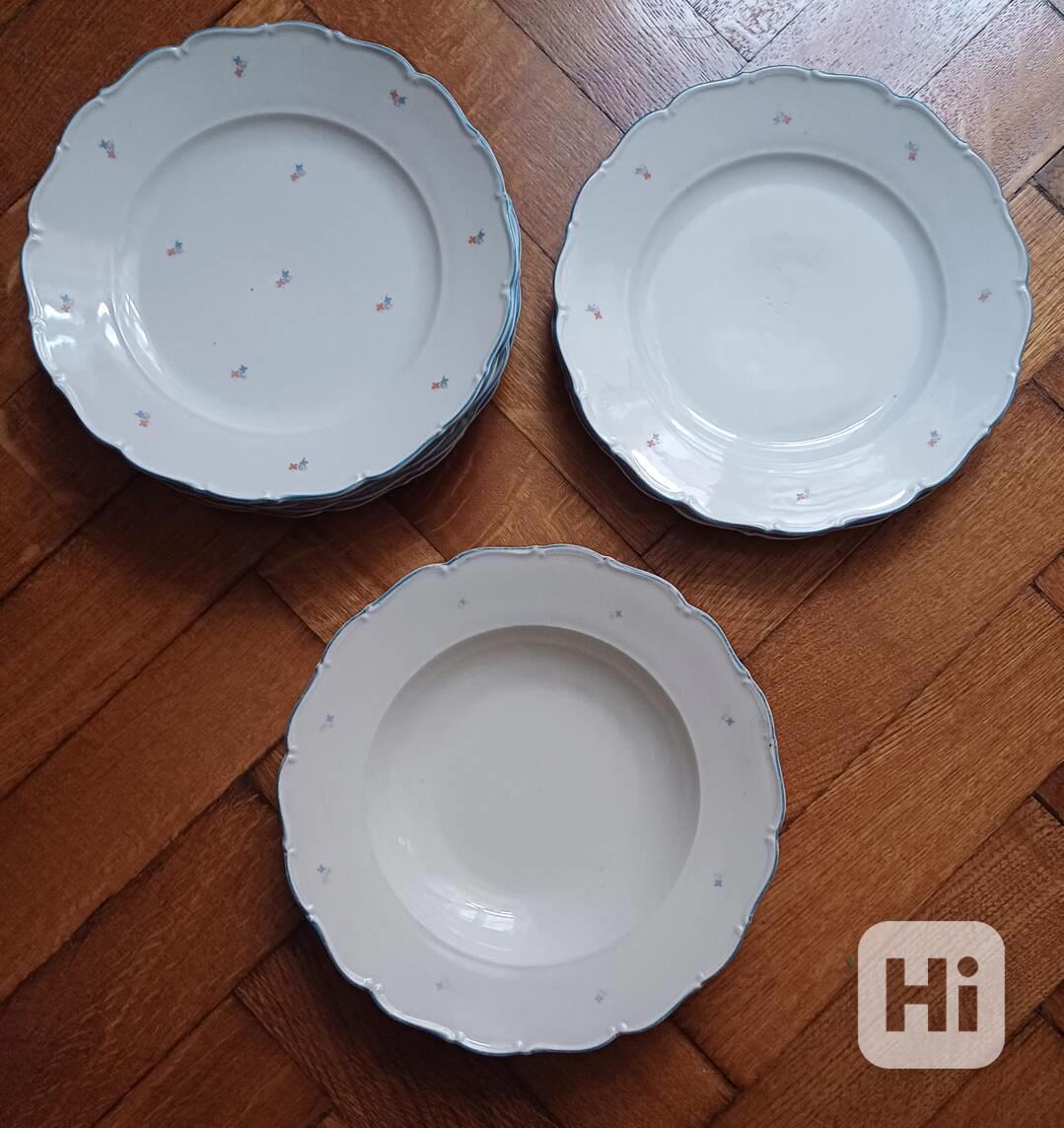 Porcelánové talíře pochází z produkce tradiční české porcelánky Horní Slavkov, která patří k významným výrobcům užitkového i dekorativního porcelánu v západních Čechách.Talíř je vyroben z jemného bílého porcelánu, má jednoduchý tvar, po obvodu je zvýrazněn tenkou kobaltovou linkou, která podtrhuje jeho slavnostní charakter. Dekor je řešen velmi střídmě a vkusně – na okrajích talířů jsou drobné polní květy - zvonečky v jemných přírodních odstínech, mělké talíře jsou na středové ploše doplněny stejnými florálními motivy. Osobní předání na Praze 3, nebo odeslání přes Balíkovnu či Zásilkovnu. Volejte 770 630 523, nebo pište na morgiana007@gmail.com
