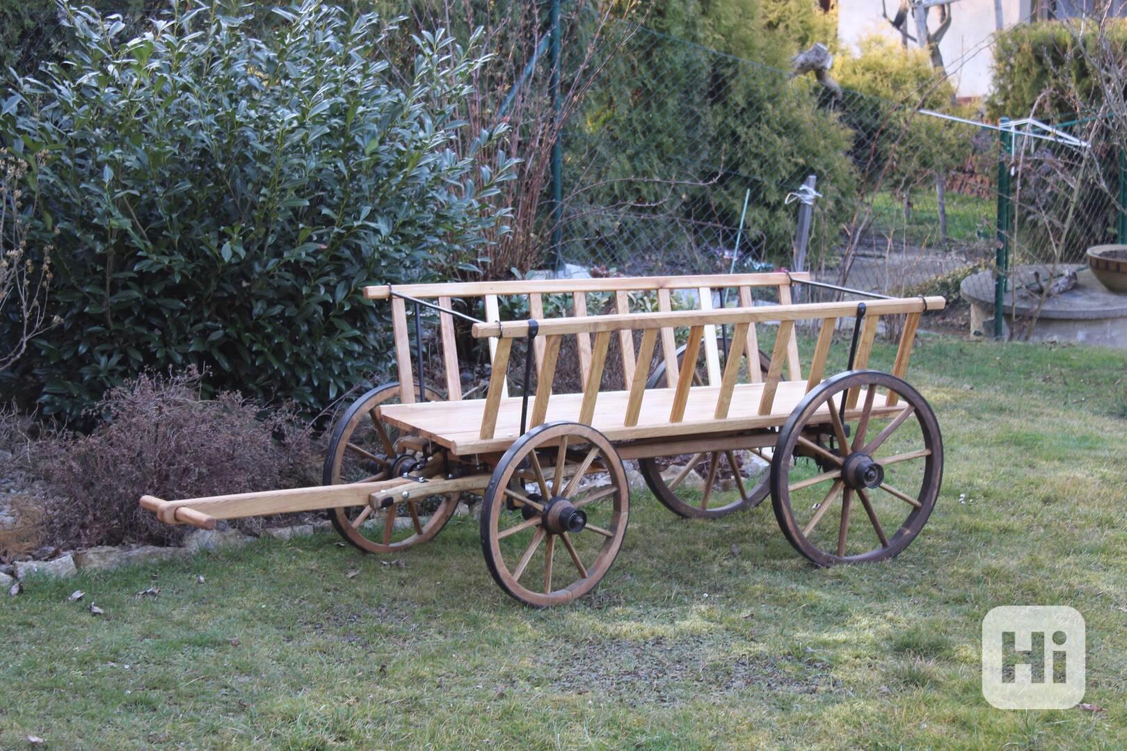 Prodám starý dřevěný žebřiňák po opravě, vhodný především jako dekorace, případně pro lehké využití za poníka. Celková délka je cca 160 cm včetně oje. Žebřiňák prošel opravou, konstrukce je pevná, dřevo je zdravé a ošetřené. Kola jsou původní s kovovými obručemi, zachovalá a plně funkční.