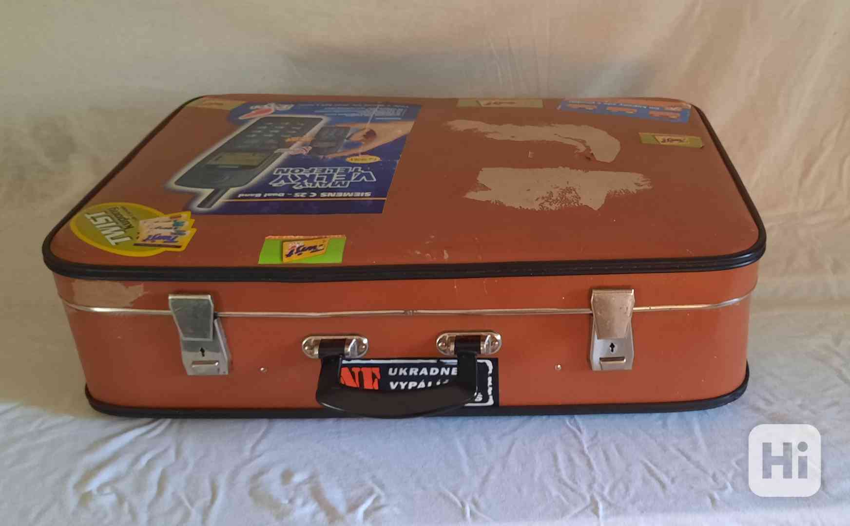 Prodám starý cestovní kufr z tvrzeného papíru (t.zv. papírák) hnědé barvy. Je polepený samolepkami, některé jsou strženy. Je ve výborném stavu, plně funkční a čistý.