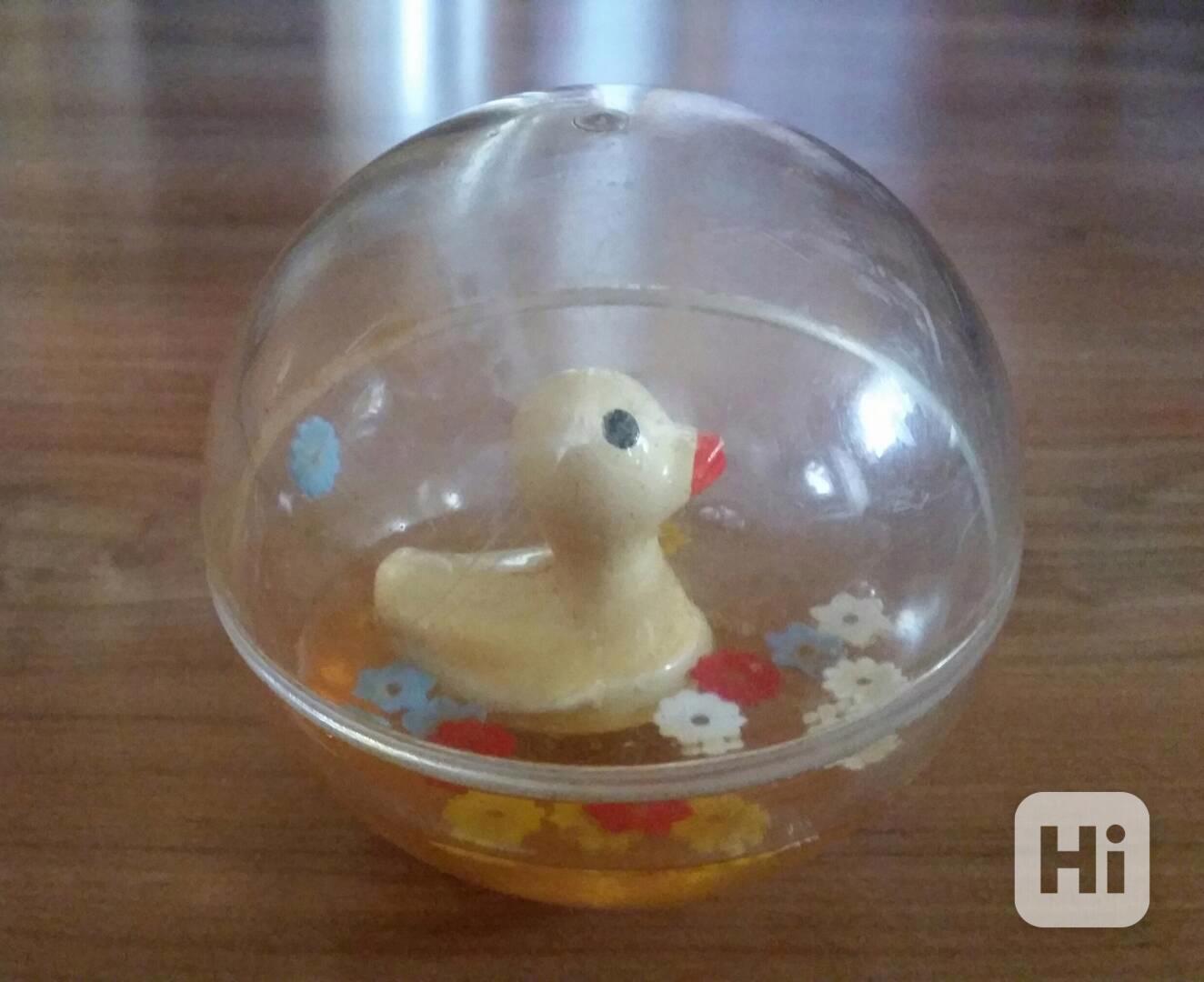 Dále nabízím sběratelům starých hraček,nebo jen pro vzpomínku na dětství,tuto starou plastovou kouličku s vodou uvnitř,na které plavou květinky s bílou kačenkou.Vše v super originálním sběratelském stavu,skoro bez škrábnutí.