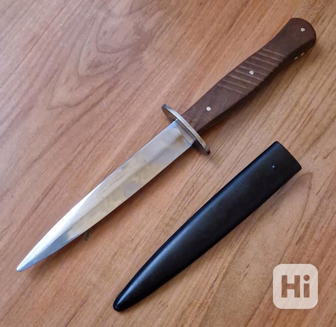 Prodám sběratelům válečných militárií a obvzlášť chladných zbraní,tuto moc pěkně udělanou repliku WH německého útočneho botoveho nože určeného ke skrytému nošení vojáky za druhé války k osobní obraně v botě.Moc pěkně udělaná replika i s pouzdrem.Jako nová. Celková délka: cca 28 cm