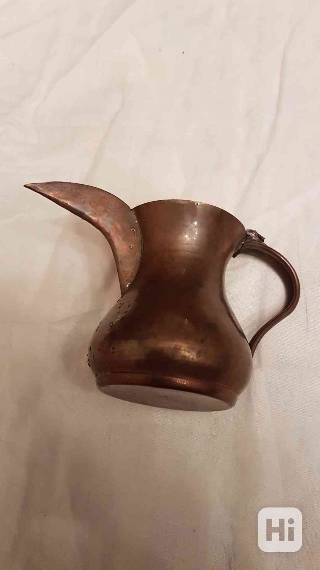 Prodám starou, krásnou arabskou měděnou džezvu s dlouhým ostrým zobáčkem a oblým ouškem. Objem 100 ml, tak akorát na dvě kafíčka. Výška 6,5 cm, celková šířka 12 cm. Perfektní stav - viz foto. Osobní předání na Praze 3, nebo zaslání přes Zásilkovnu či Balíkovnu. Volejte 770 630 523, nebo pište na morgiana007@gmail.com
