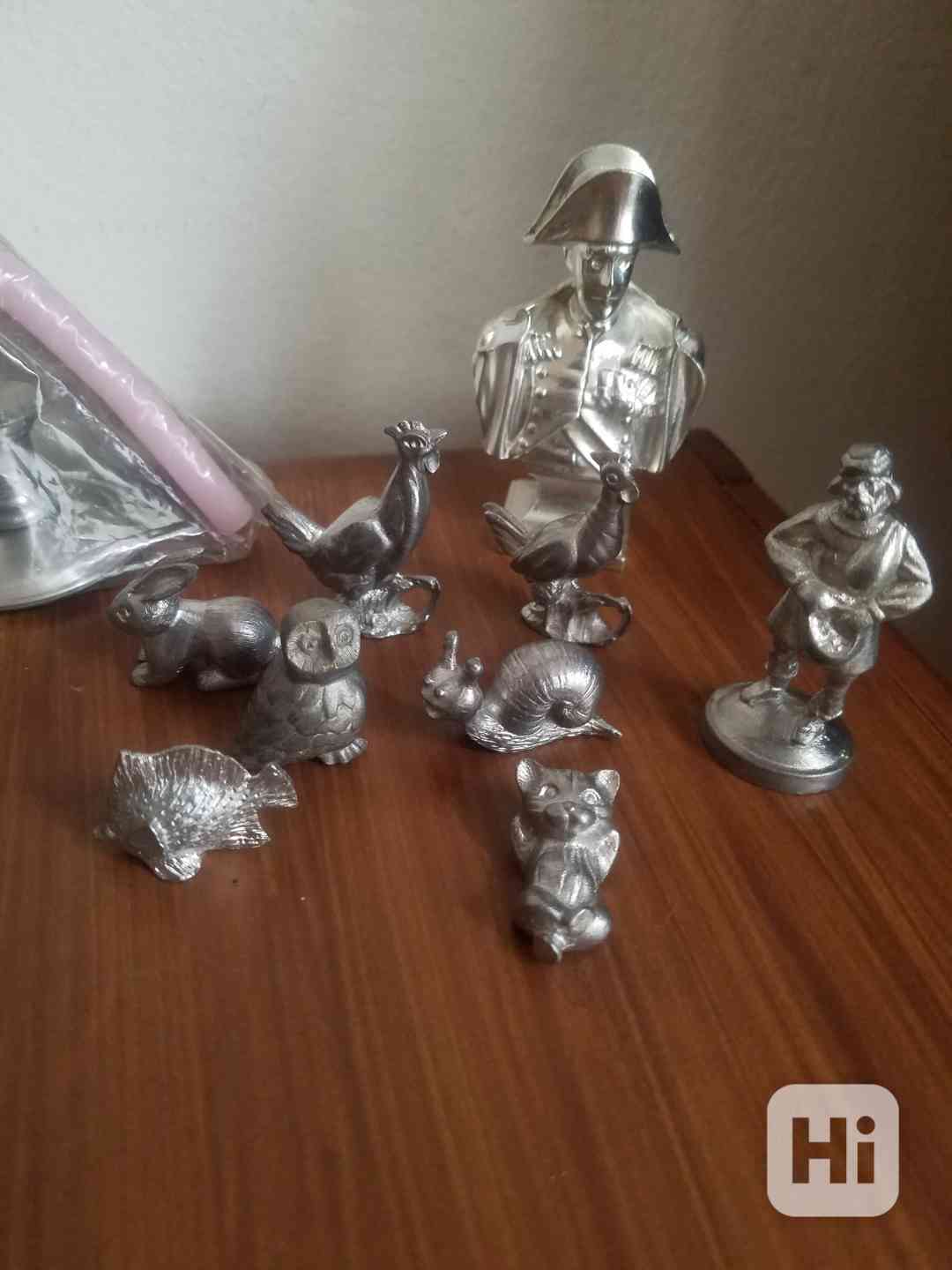Prodám, i jednotlivě, sbírku zcela nových cínových figurek zvířat - dvouhrbý velbloud, koně, prase, různí psi, lev, ovce, zajíc, kohout a slepice, sova, šnek, kočka, ryba a králík a také cínovou bystu Napoleona a figurku chuďase (plný růst). Figurky zvířat po 120,- Kč, figurka Napoleona za 250,- Kč, figurka Chuďase za 150,- Kč. Vše je v perfektním stavu, nepoškozené. Osobní předání na Praze 3, nebo zaslání přes Zásilkovnu či Balíkovnu. Volejte 770 630 523, nebo pište na morgiana007@gmail.com