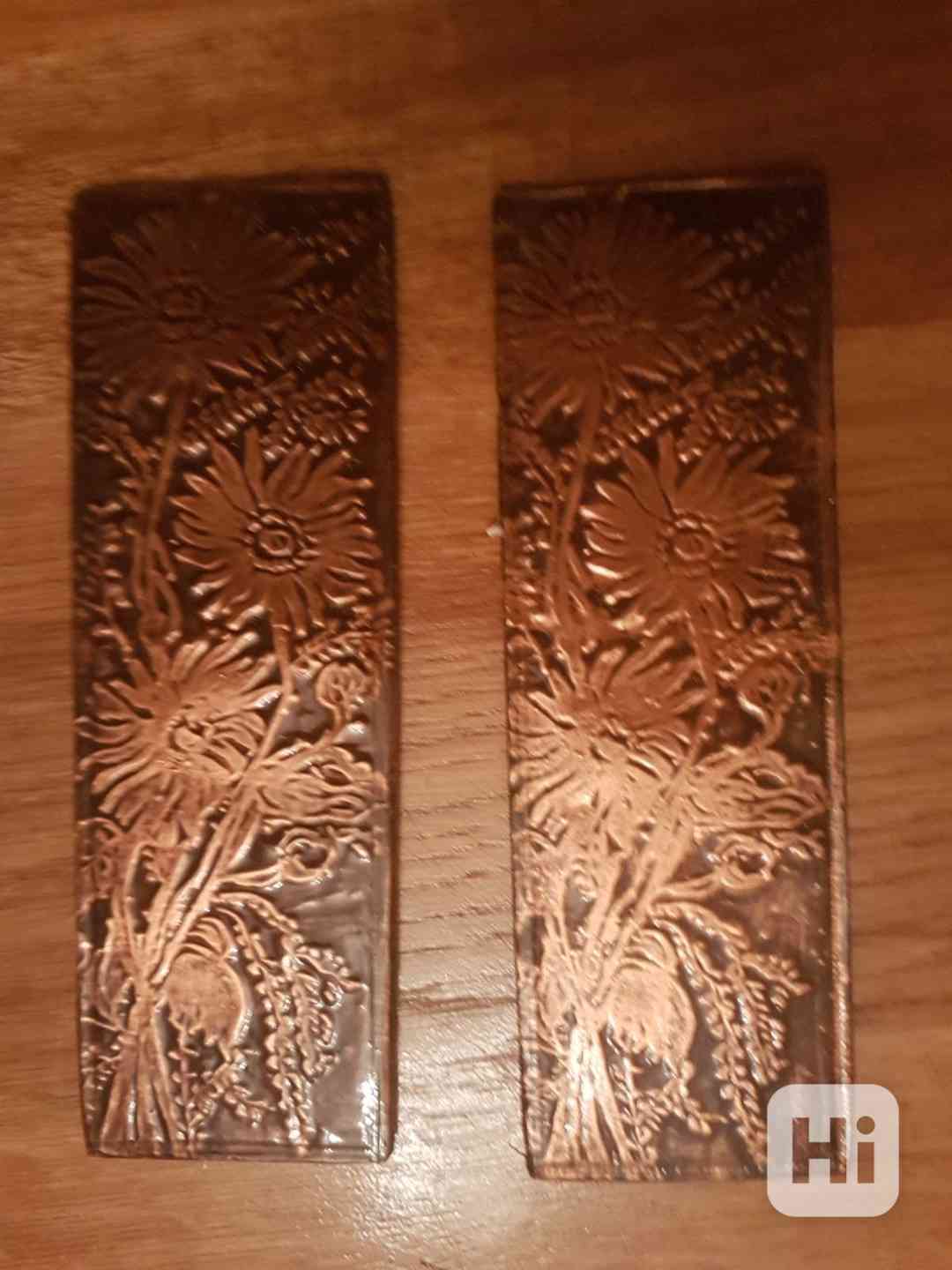 Prodám dva identické závěsné patinované a plastikované reliéfy s květinovým motivem, zcela nové. Rozměry: 6,5 cm x 20 cm. Výrobce: Služby města Ostravy, závod Kovořemesel, provozovna Kovotepectví, 1978. Cena za kus 50 Kč. Osobní předání na Praze 3, nebo zaslání přes Zásilkovnu, či Balíkovnu. Volejte 770 630 523, nebo pište na morgiana007@gmail.com