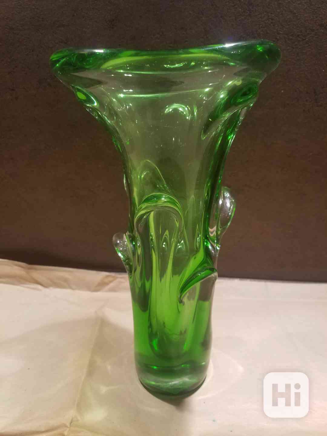 Prodám masivní zelenou hutní vázu s jádrem z výrazně barevného skla, které je navrstvené čirou a podjímané topasovou sklovinou a vytváří tzv. Sommerso efekt. Autor Jan Beránek, sklárna Ústředí uměleckých řemesel Škrdlovice po roce 1960. Výška 27 cm, průměr 15 cm v perfektním stavu. Osobní předání na Praze 3, nebo, pečlivě zabaleno, odeslání přes Zásilkovnu či Balíkovnu. Volejte 770 630 523, nebo pište na morgiana007@gmail.com