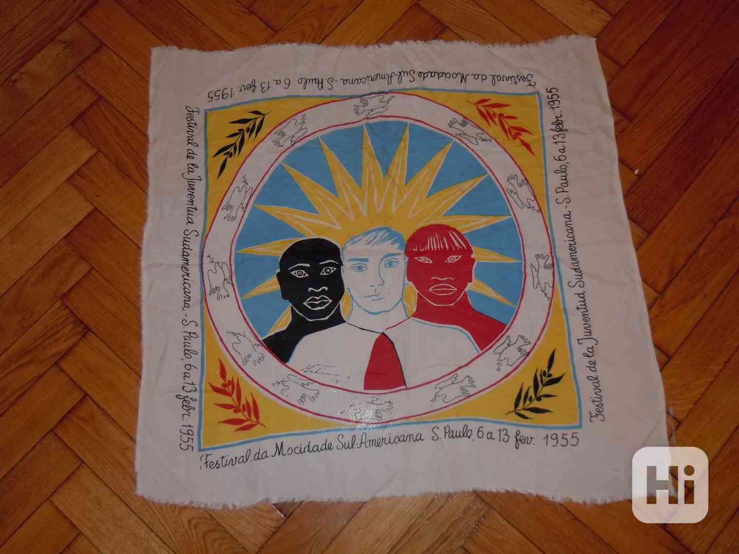Prodám bavlněný šátek, věnovaný setkání mládeže Jižní Ameriky v Sao Paulu, ve dnech 06. - 13.02.1955. Rozměry: 68 x 68 cm, perfektní stav, pro sběratele. Osobní předání na Praze 3, nebo zaslání přes Zásilkovnu či Balíkovnu. Volejte 770 630 523, nebo pište na morgiana007@gmail.com