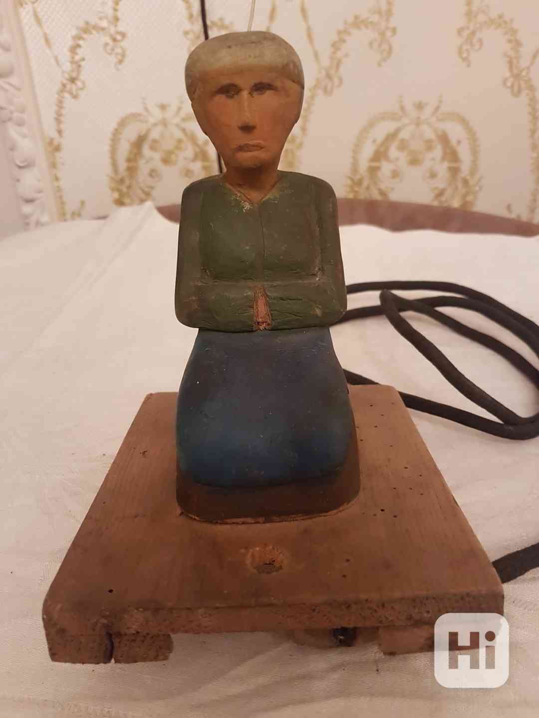 Prodám starou, podomácku vyrobenou dřevěnou lampičku ve formě klečícího uhlíře s putnou na zádech. Původní dřevěná zástrčka. Vyrobeno nejspíše v období 1. republiky. Ošetřeno proti červotoči, původní barevný nátěr. Osobní předání na Praze 3, nebo zaslání přes Zásilkovnu. Volejte 770 630 523, nebo pište na morgiana007@gmail.com