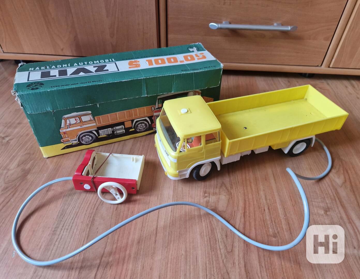 Dále prodám sběratelům starých hraček,nebo jen pro vzpomínku na mládí tento starý nákladní automobil LIAZ Š 100.05 na bowden - ITES - s origo docela zachovalou krabicí,Náklaďák je žlutobílé barvy.Rok výroby 1987.Chybí kryt baterií na ovladači a auto nezahýbá,tudíž kdo si opraví,nebo jen na vystavení za sklo,nebo muzea retro hraček. Jinak pěkný stav.třeba někdo využije.