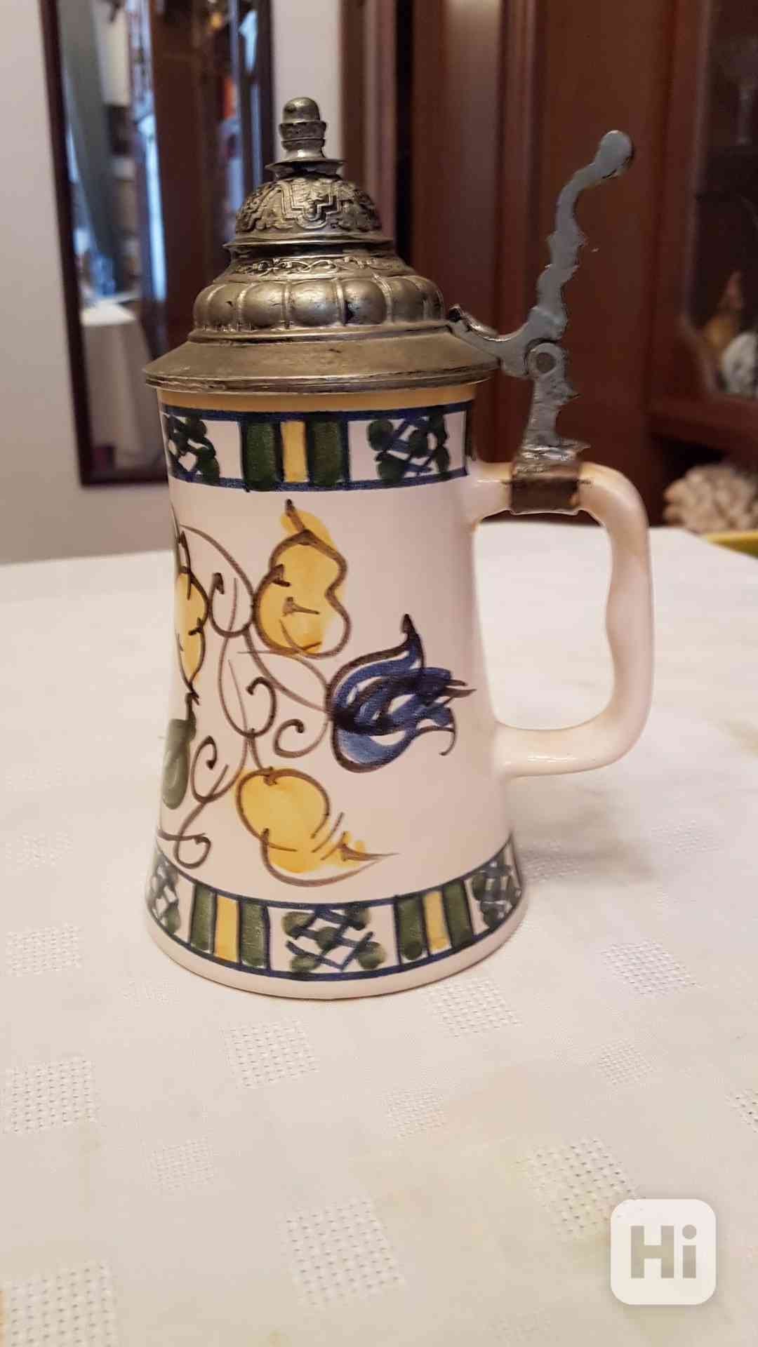 Prodám dva staré, ručně malované a glazované kameninové krýgly (pivní holby) s figurálním cínovým víčkem. Výška 20 cm, druhý 20,5 cm. Ruční výroba, plně funkční, ale i pro sběratele. Cena za 2 kusy 1400,- Kč, možno i jednotlivě. Osobní předání na Praze 3, nebo zaslání přes Zásilkovnu. Volejte 770 630 523, nebo pište na morgiana007@gmail.com