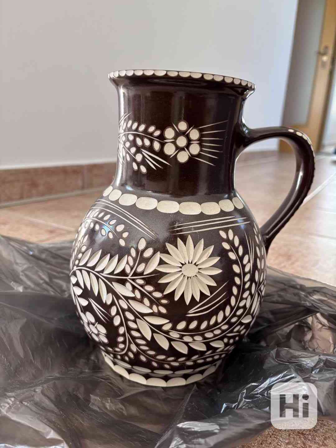 Prodám hnědý džbán na pivo, výška 23, cm, průměr 11 cm, čistý objem 2,l (na 4 piva). Cena 300,- Kč, Praha 4, tel: 602 605 095