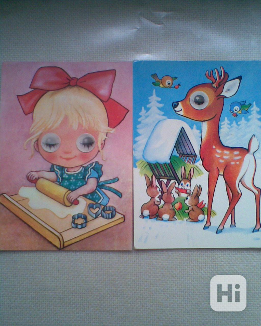 retro pohlednice mrkací, měnící, skládací, Vánoční od Fischerové- Květové, medvídci