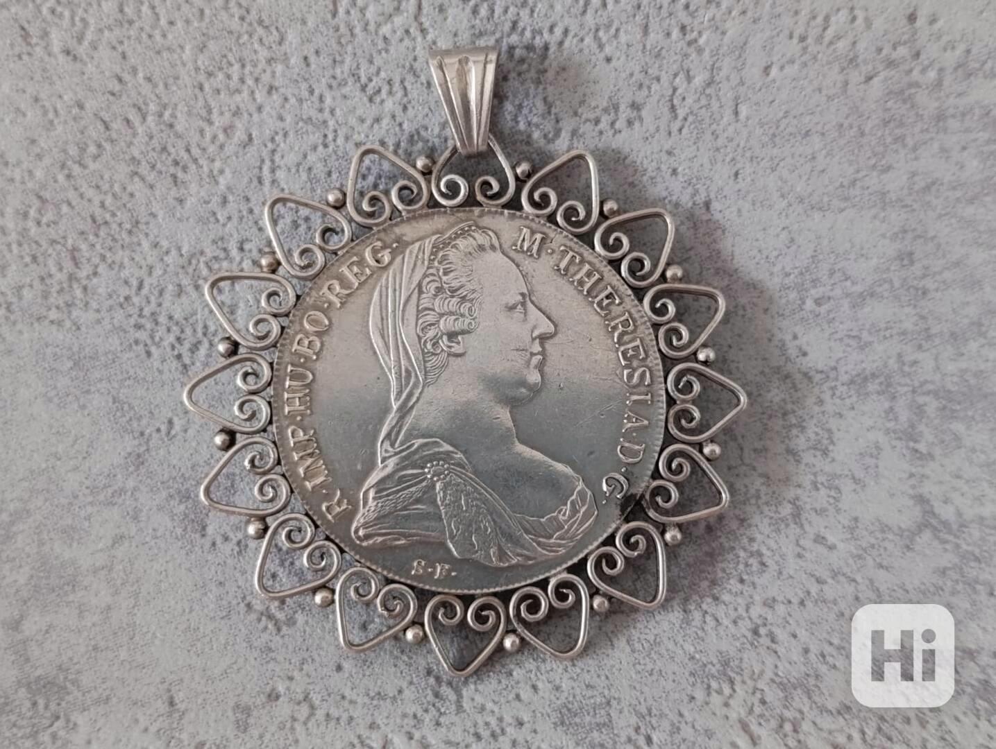 Zobrazit všeVelká stříbrná mince - tolar Marie Terezie v rámu, punc, 37g