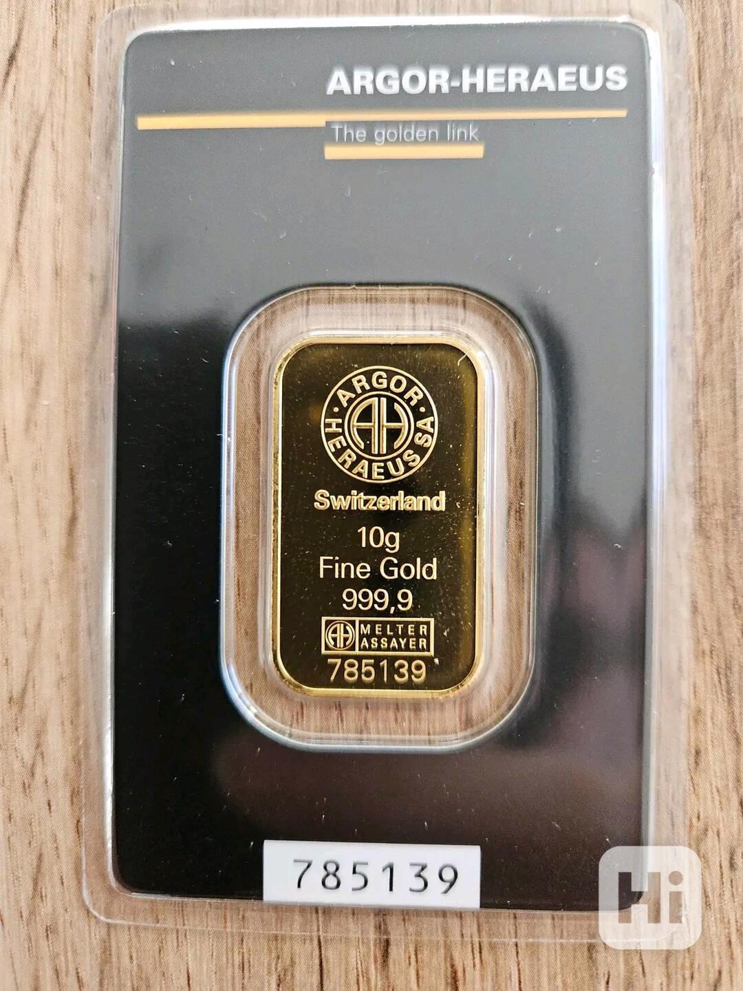 Prodám investiční zlatý slitek Argor-Heraeus 10 g.